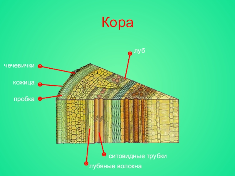 7) Луб – часть коры Он состоит из лубяных волокон и ситовидных трубок