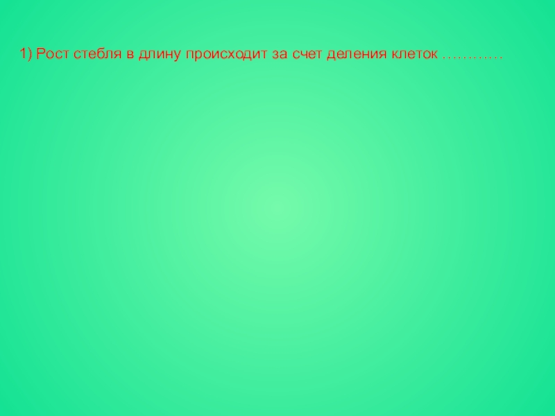 Слайд 91) Рост стебля в длину происходит за счет деления клеток …………