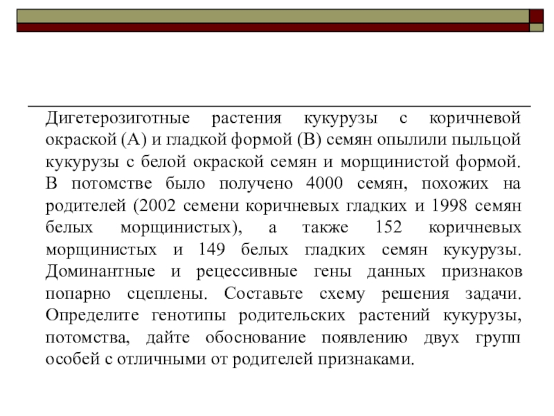 Вывод: в потомстве должны отсутствовать новые комбинации признаков