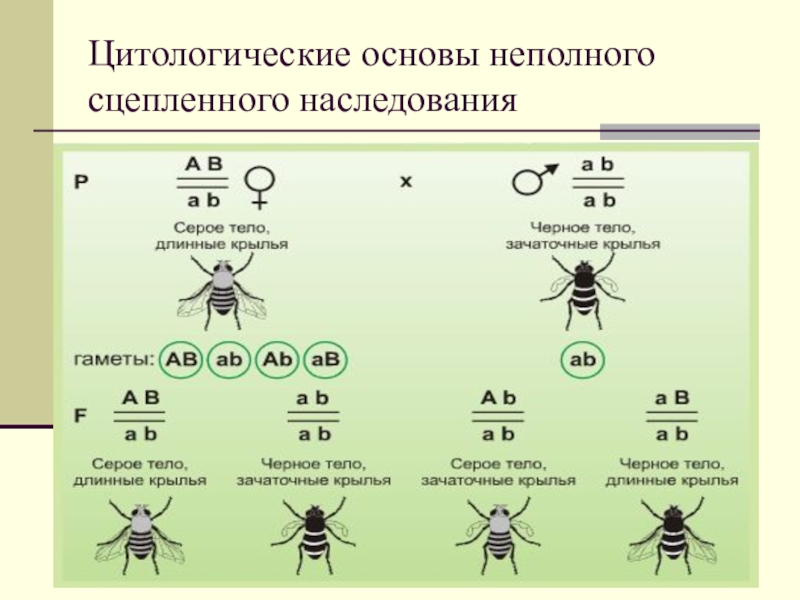 Слайд 6Цитологические основы неполного сцепленного наследования