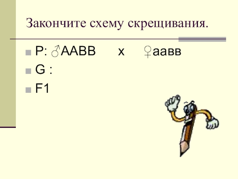 Закончите схему скрещивания.Р: ♂ААВВ   х   ♀ааввG : F1