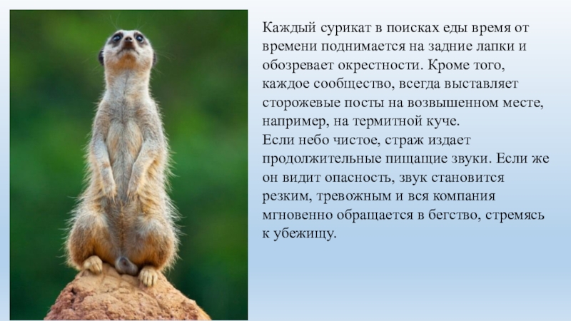 Слайд 10Каждый сурикат в поисках еды время от времени поднимается на задние