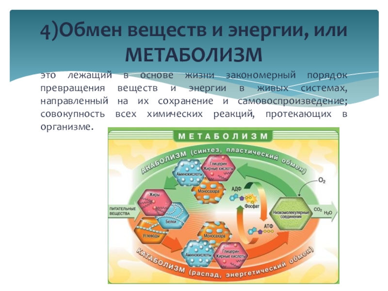 4)Обмен веществ и энергии, или МЕТАБОЛИЗМ