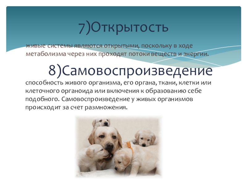 способность живого организма, его органа, ткани, клетки или клеточного органоида или включения к образованию себе подобного. Самовоспроизведение у живых организмов происходит за счет размножения.