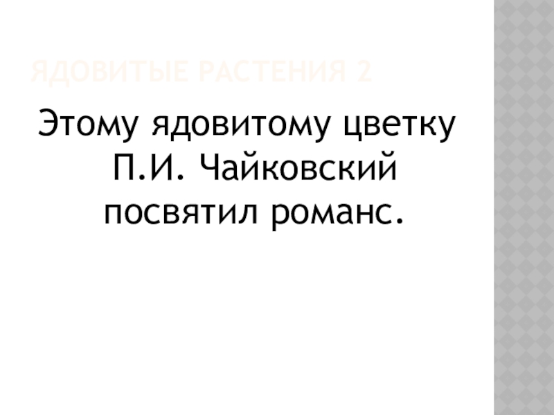 Этому ядовитому цветку П.И. Чайковский посвятил романс.
