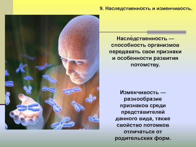 Изменчивость — разнообразие признаков среди представителей данного вида, также свойство потомков отличаться от родительских форм.