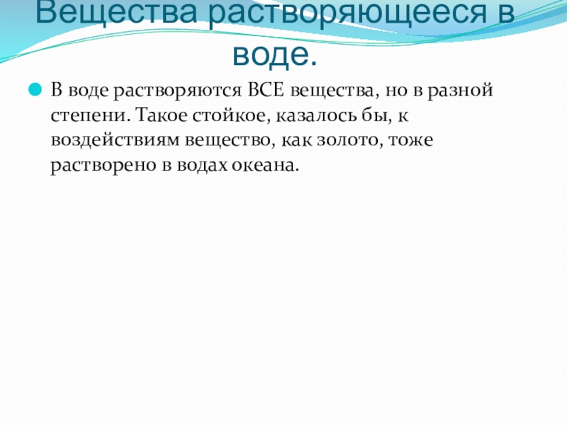 степени. Такое стойкое, казалось бы, к воздействиям вещество, как золото, тоже растворено в водах океана.