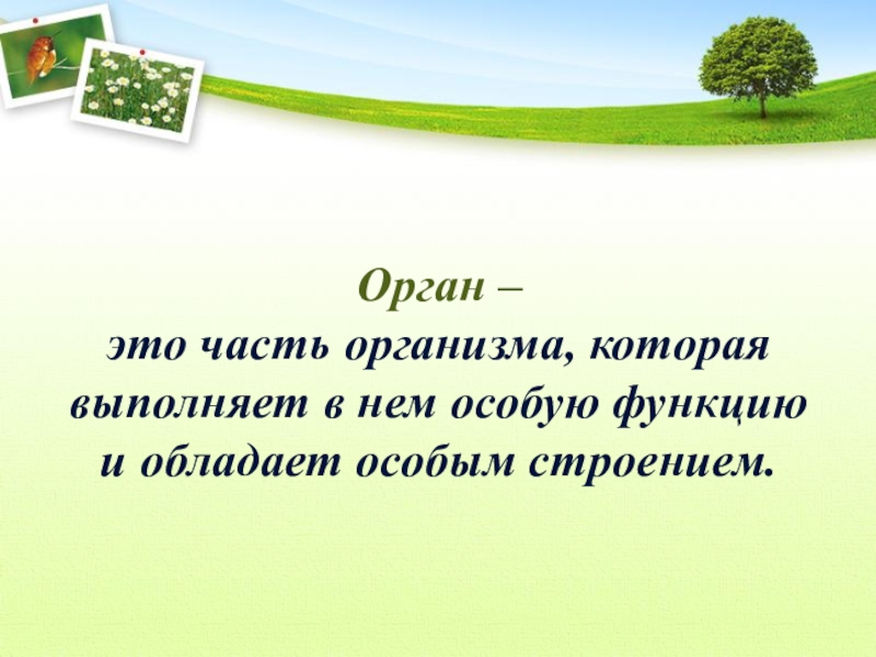 Орган –  это часть организма, которая выполняет в нем особую функцию и обладает особым строением.
