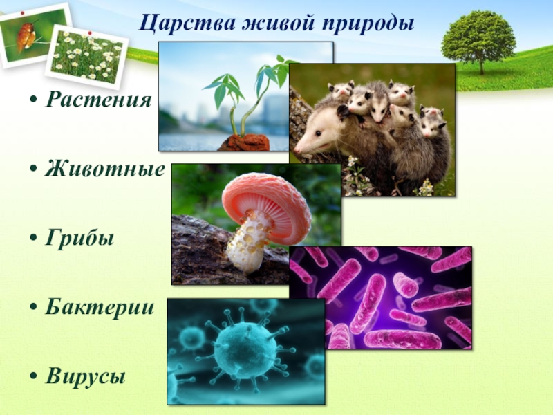 Царства живой природыРастенияЖивотные ГрибыБактерииВирусы