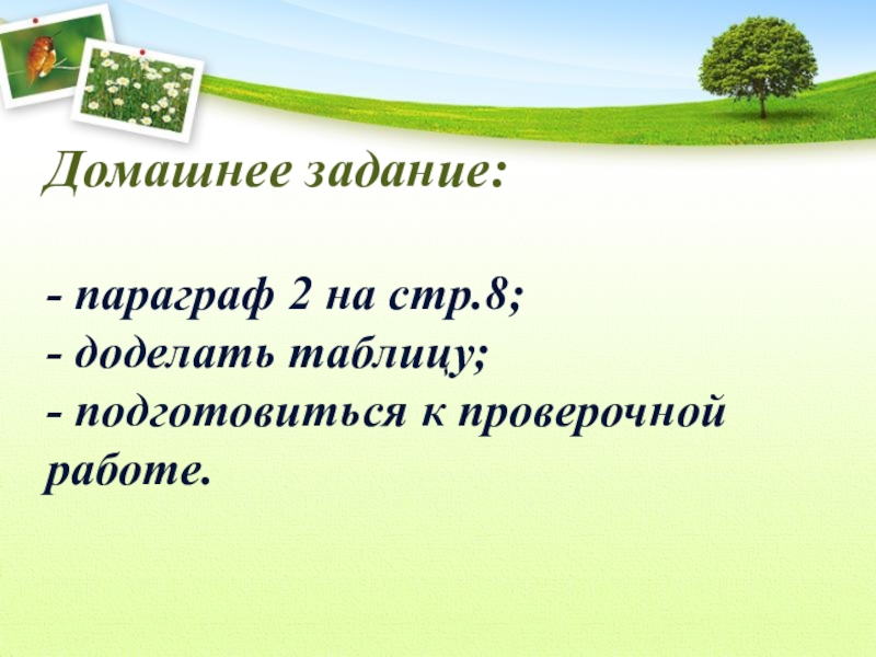 Слайд 18Домашнее задание: - параграф 2 на стр.8; - доделать таблицу; - подготовиться к проверочной