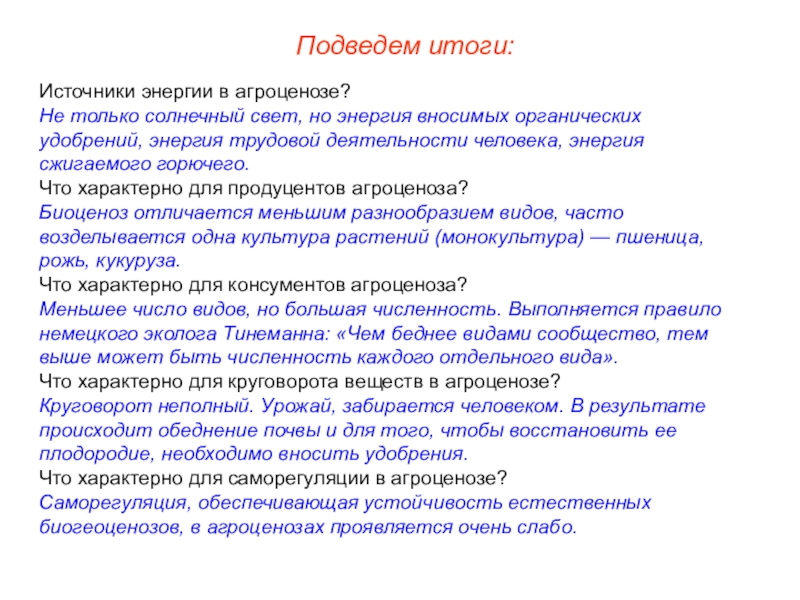 Саморегуляция, обеспечивающая устойчивость естественных биогеоценозов, в агроценозах проявляется очень слабо.