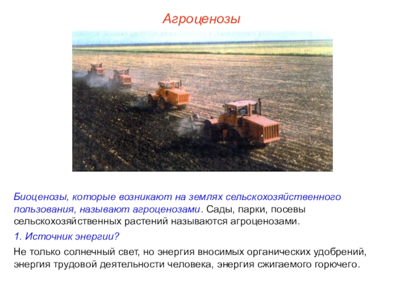органических удобрений, энергия трудовой деятельности человека, энергия сжигаемого горючего.
