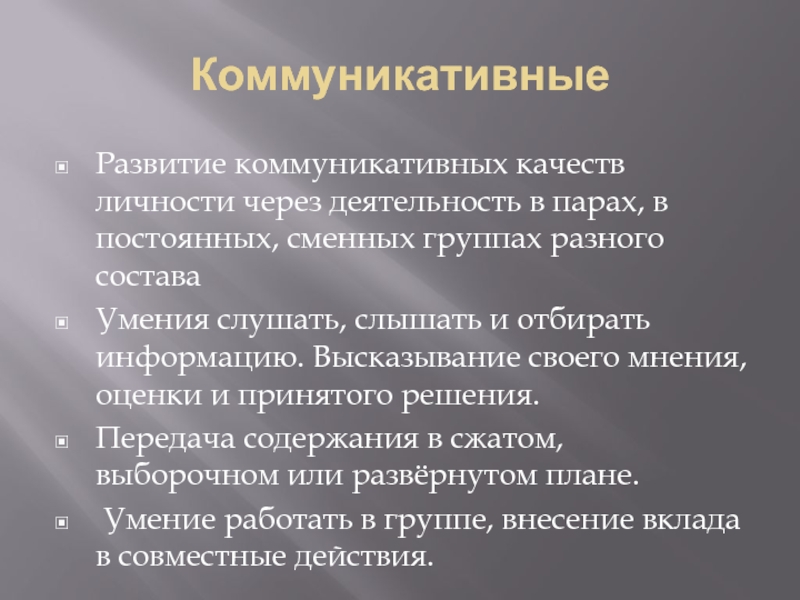 Развитие коммуникативных качеств личности через деятельность в парах, в постоянных, сменных