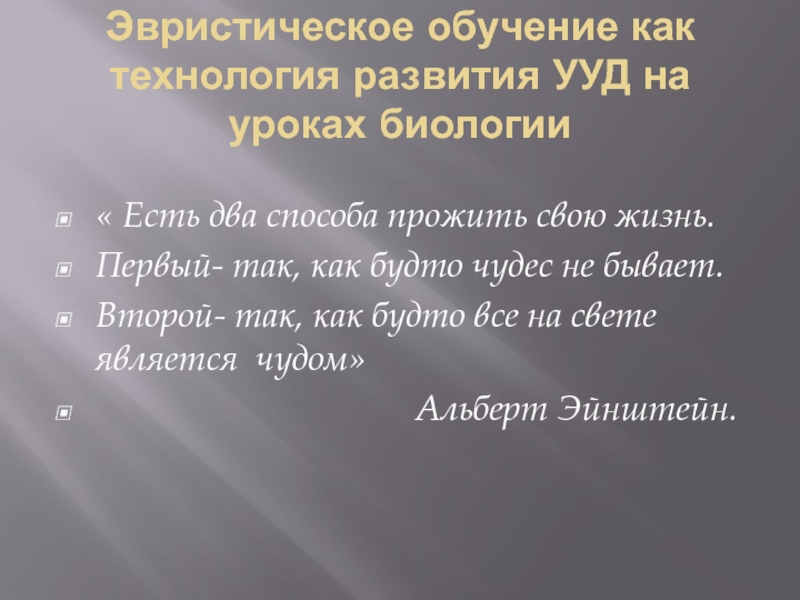 Слайд 7Эвристическое обучение как технология развития УУД на уроках биологии