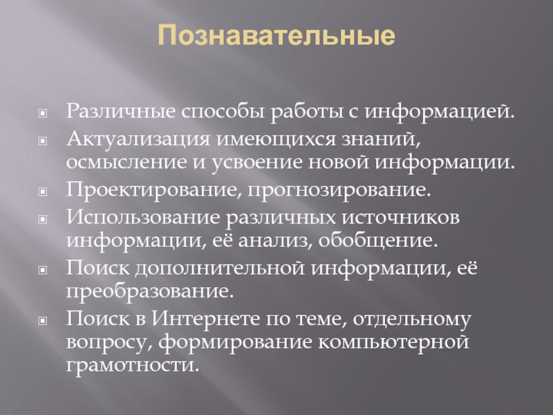 Актуализация имеющихся знаний, осмысление и усвоение новой