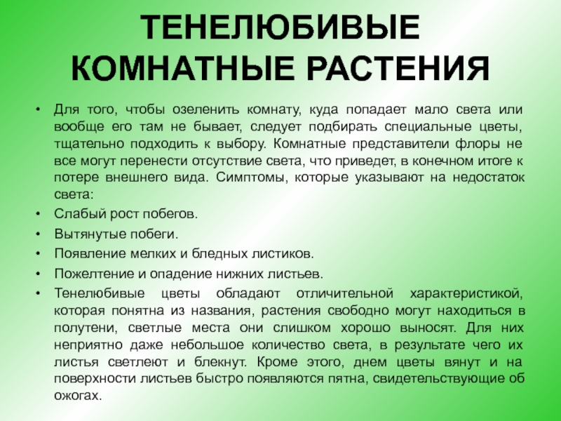 Слайд 5ОТЛИЧИТЕЛЬНАЯ ОСОБЕННОСТЬ ТЕНЕЛЮБИВЫХ КОМНАТНЫХ РАСТЕНИЙ