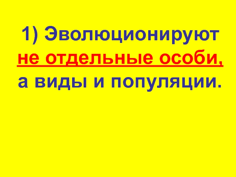 Слайд 101) Эволюционируют не отдельные особи, а виды и популяции.