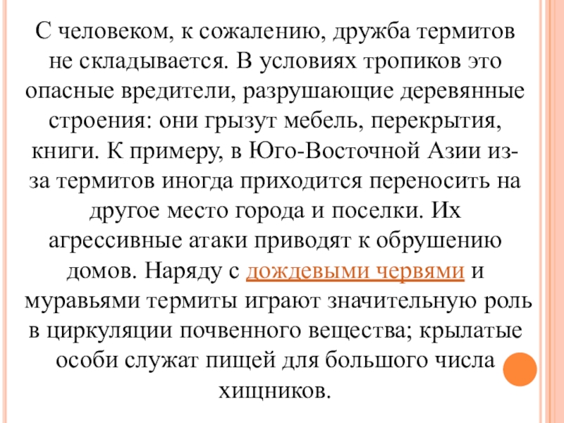 Слайд 23С человеком, к сожалению, дружба термитов не складывается. В условиях тропиков
