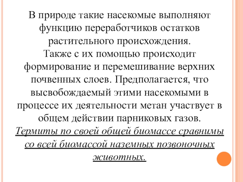 Слайд 27В природе такие насекомые выполняют функцию переработчиков остатков растительного происхождения.