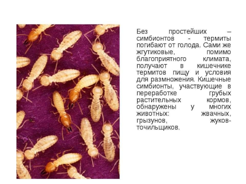 Слайд 6Симбиотическая система устроена по принципу матрешки: в кишечнике термита живут жгутиконосцы,