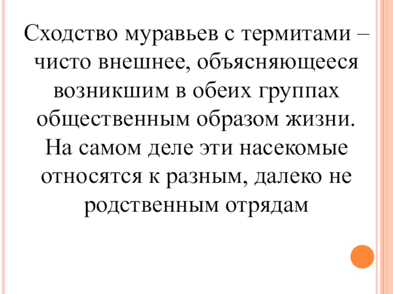 Слайд 15Сходство муравьев с термитами – чисто внешнее, объясняющееся возникшим в обеих