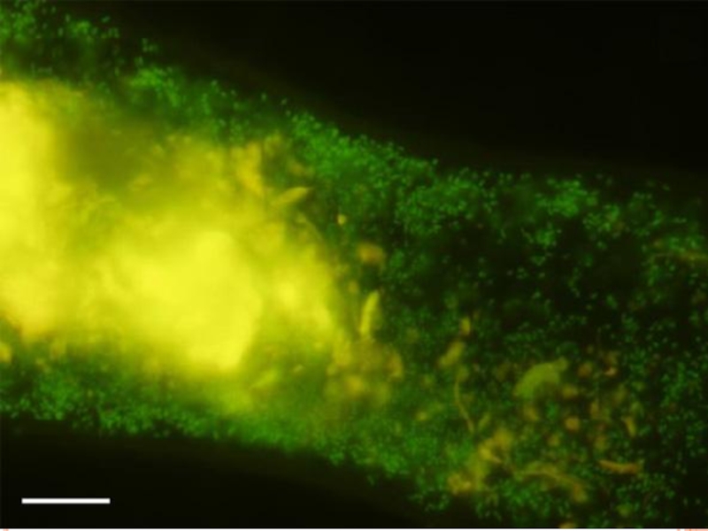 а внутри жгутиконосца – бактерии. Термиты находят пищу (растительные остатки или деревянные постройки), измельчают древесную массу и доводят ее до мелкодисперсного состояния, в котором ее могут поглощать жгутиконосцы. Затем за дело берутся живущие внутри жгутиконосца бактерии, которые и проводят основные химические реакции по переработке исходно малосъедобного продукта во вполне усвояемую форму.