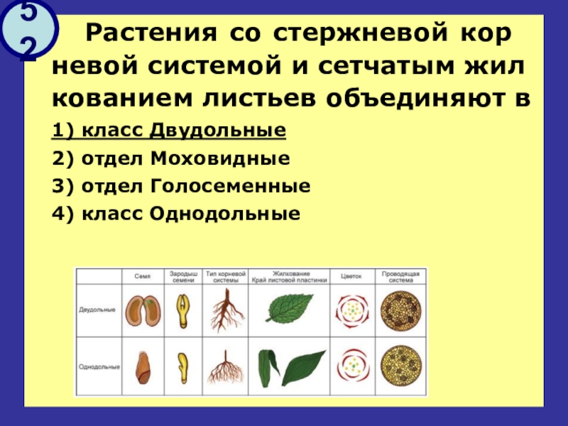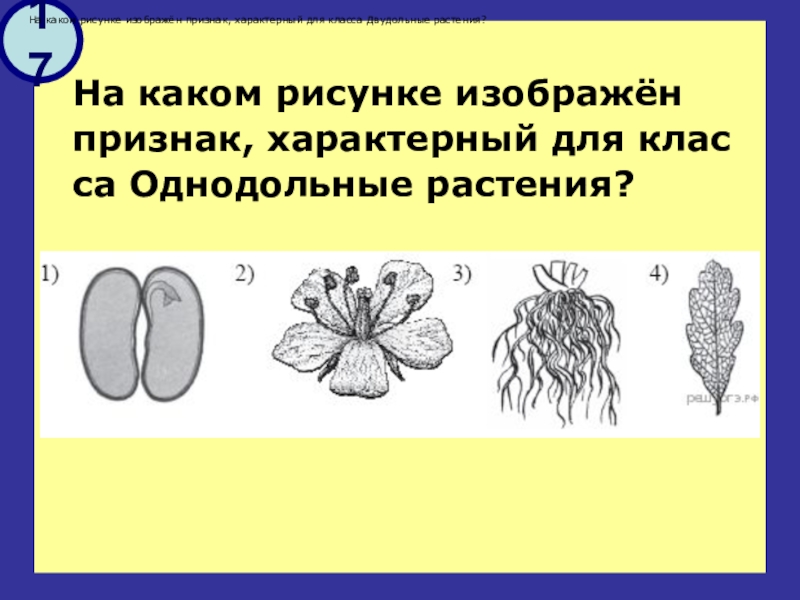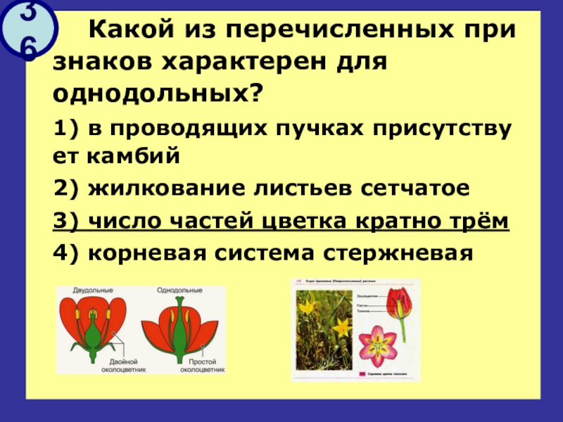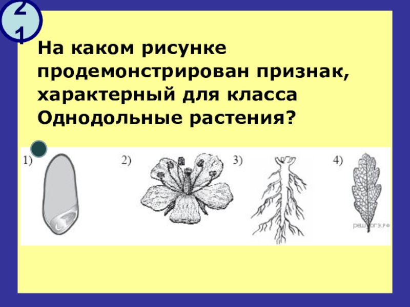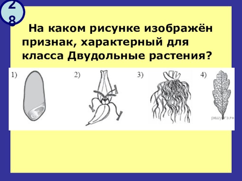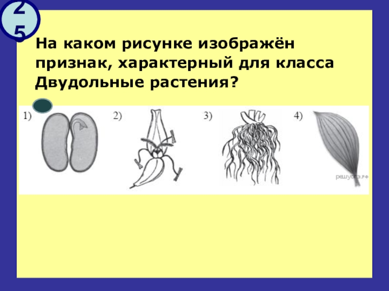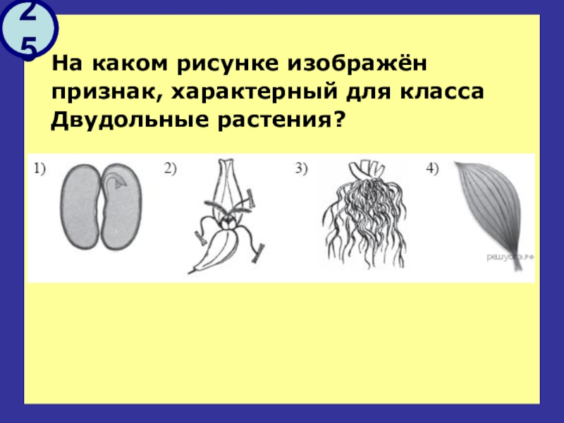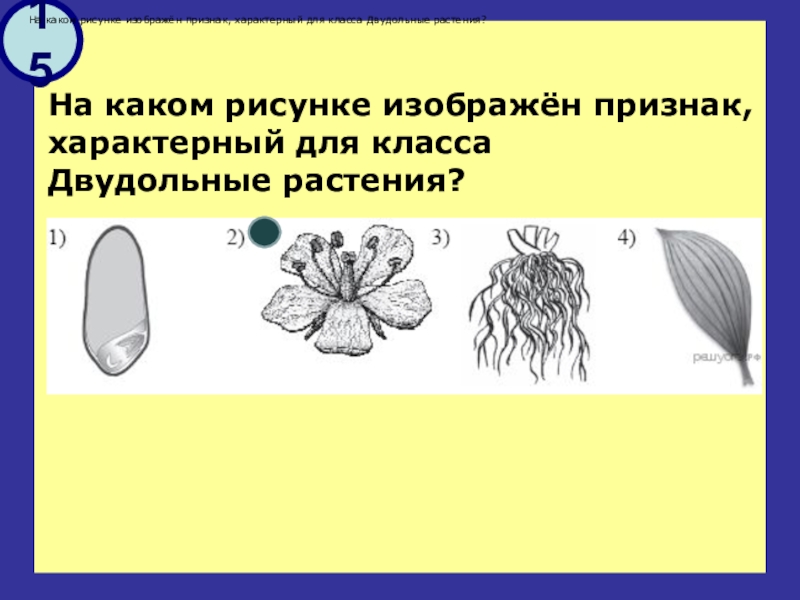 На каком рисунке изображён признак, характерный для класса Двудольные растения?