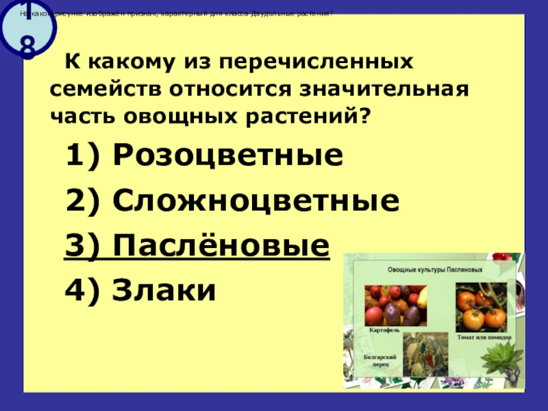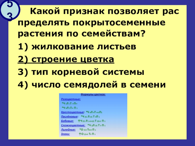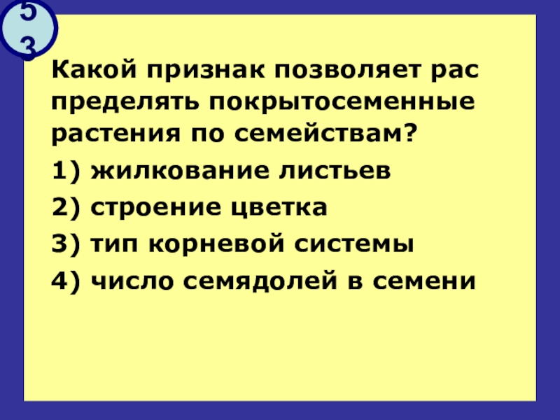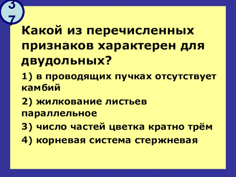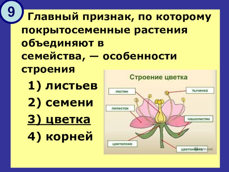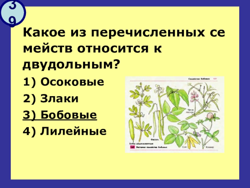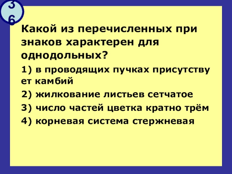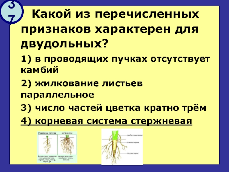 На каком рисунке изображён признак, характерный для класса Двудольные растения?