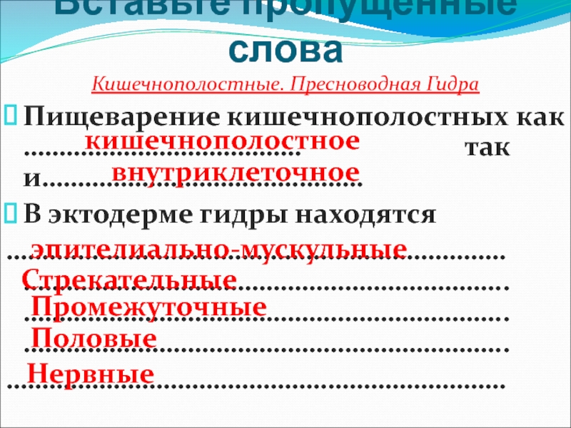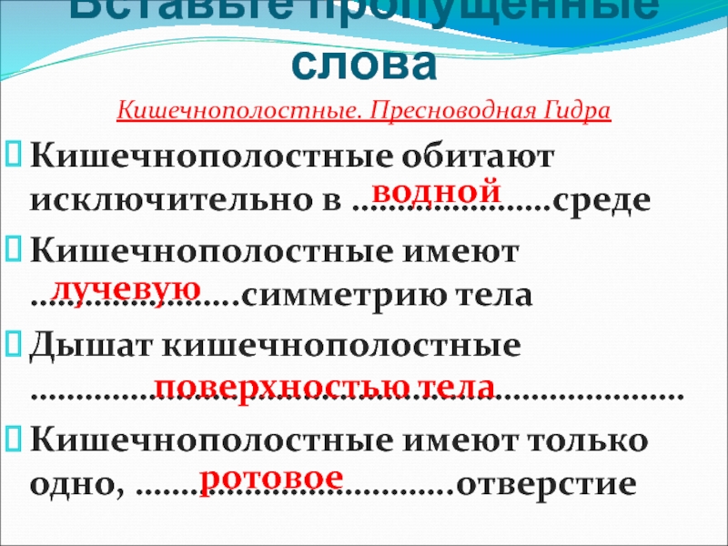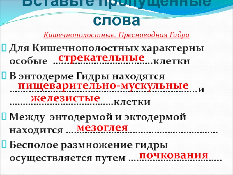 9.Имеют эктодерму, энтодерму и неклеточную мезоглею