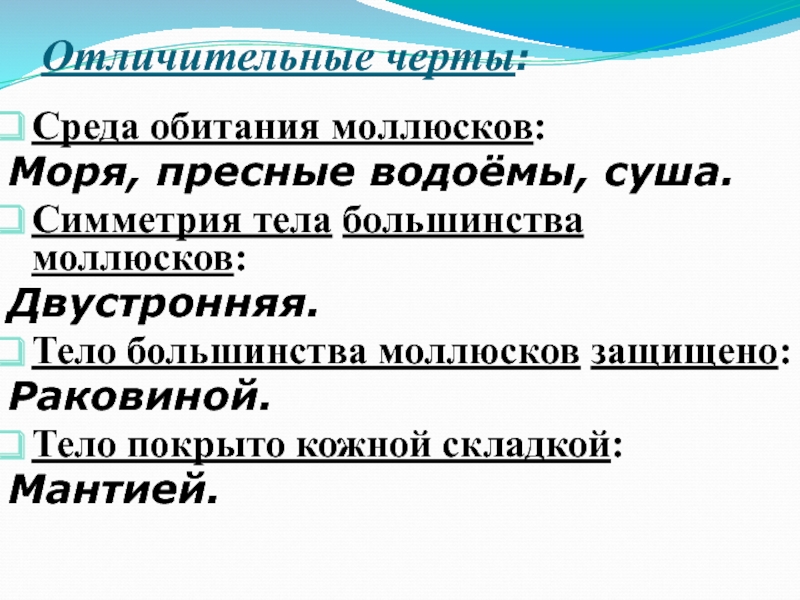 Признак Раковина брюхоного моллюска Раковина двустворчатого моллюска