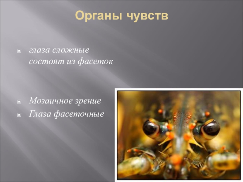 Органы чувств глаза сложные состоят из фасетокМозаичное зрениеГлаза фасеточные