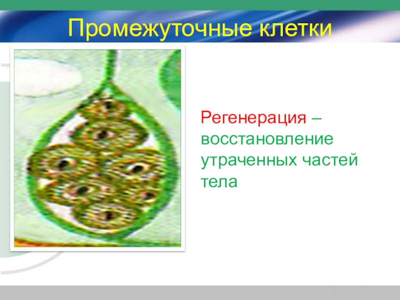 Промежуточные клеткиРегенерация – восстановление утраченных частей тела