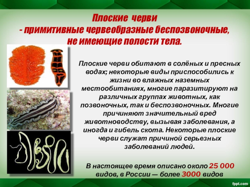- примитивные червеобразные беспозвоночные, не имеющие полости тела.