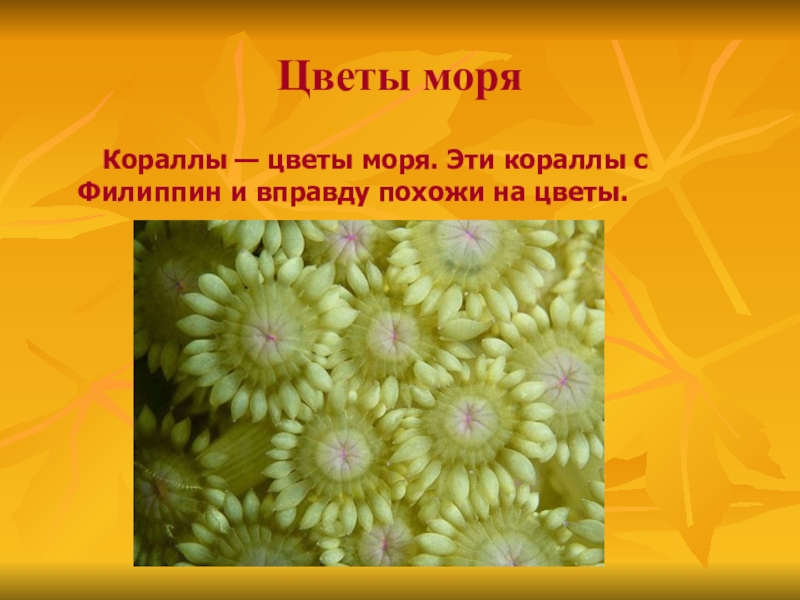 Цветы моря    Кораллы — цветы моря. Эти кораллы с Филиппин и вправду похожи на