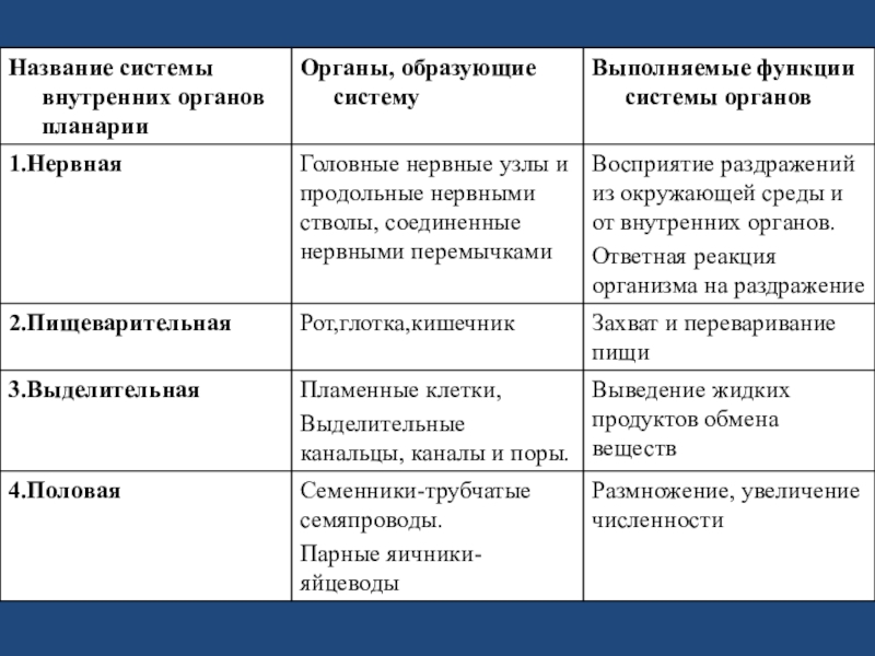 Нервная системаНервные клетки планарии не разбросаны по всему телу, как у гидры, а собраны в два нервных