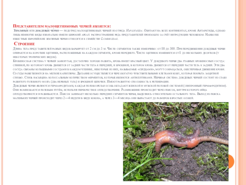 Малощетинковые черви (Oligochaeta), к которым относятся дождевые черви