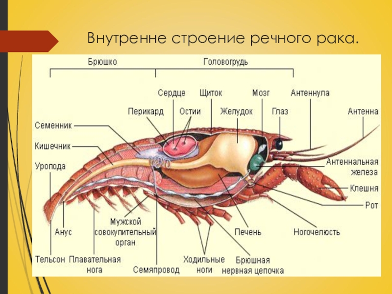 Слайд 17Внутренне строение речного рака.