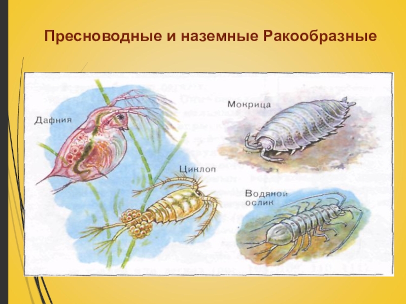 Слайд 7Пресноводные и наземные Ракообразные.