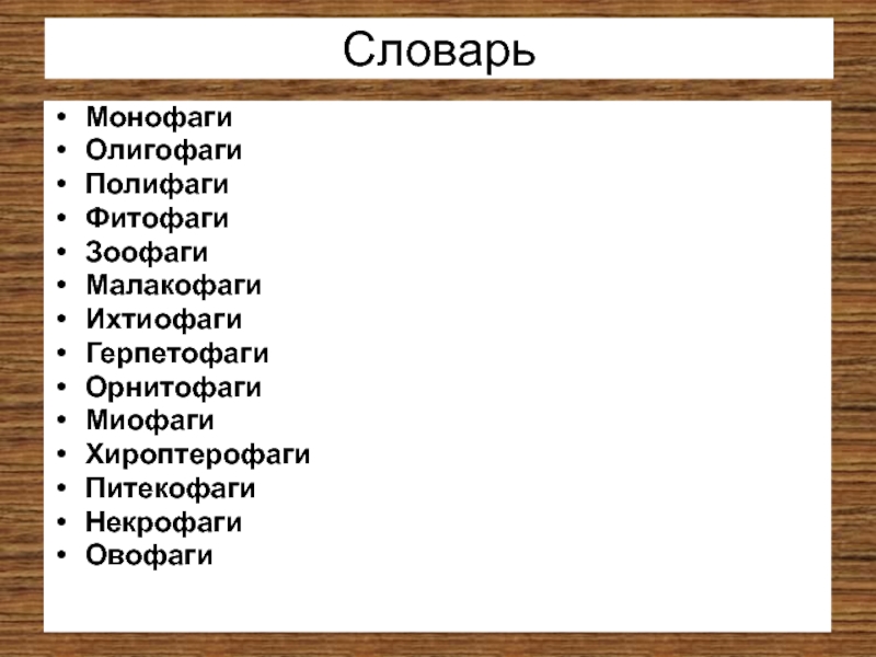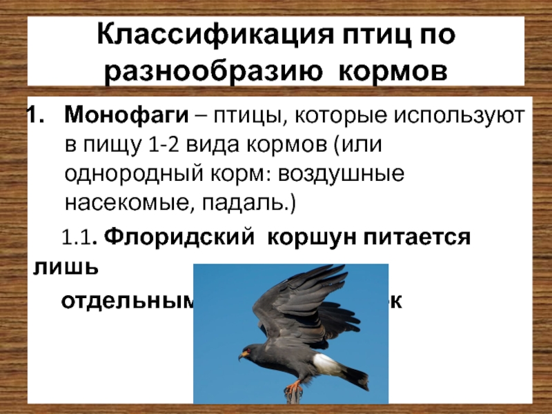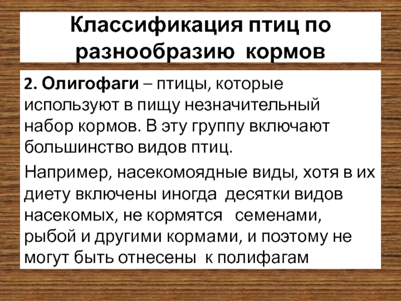 пищу незначительный набор кормов. В эту группу включают большинство видов птиц.