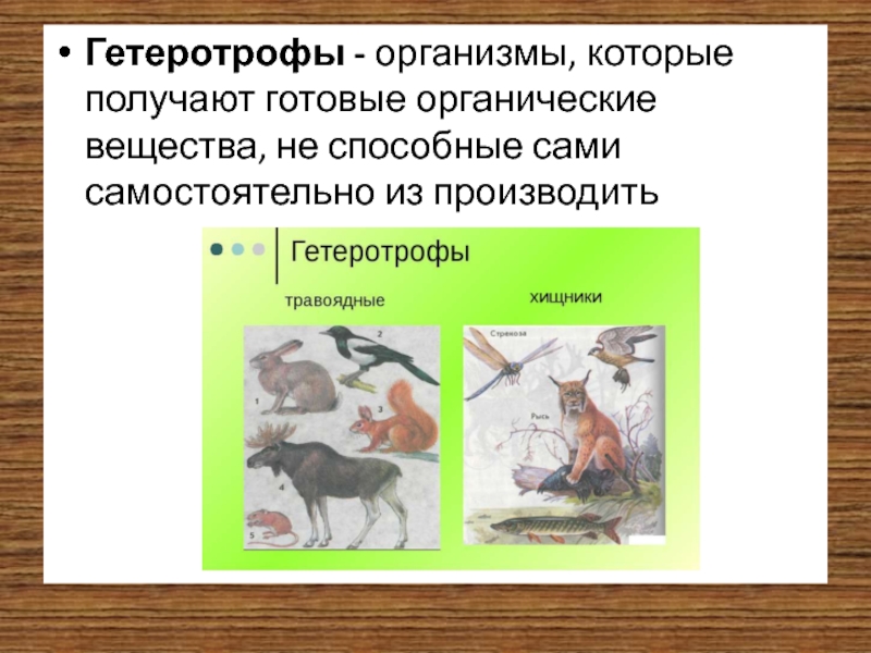 Слайд 9Гетеротрофы - организмы, которые получают готовые органические вещества, не способные сами