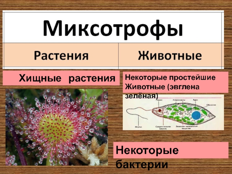 Слайд 13Миксотрофы - организмы, способные питаться как автотрофно (как растения), так и