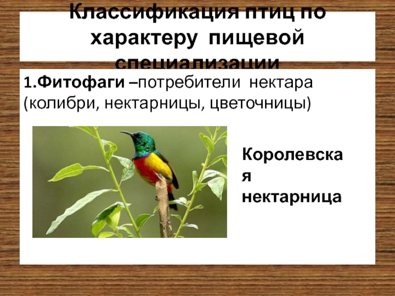 1.Фитофаги –потребители нектара (колибри, нектарницы, цветочницы)