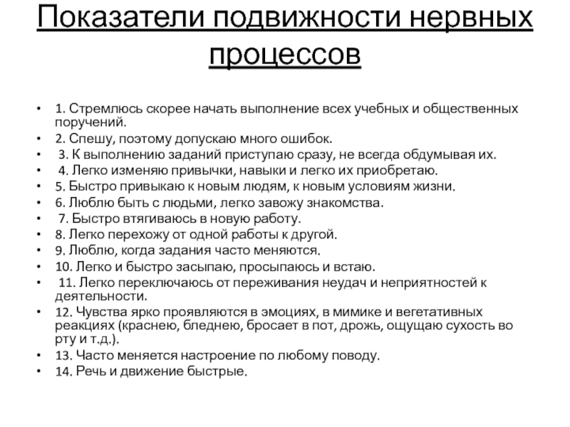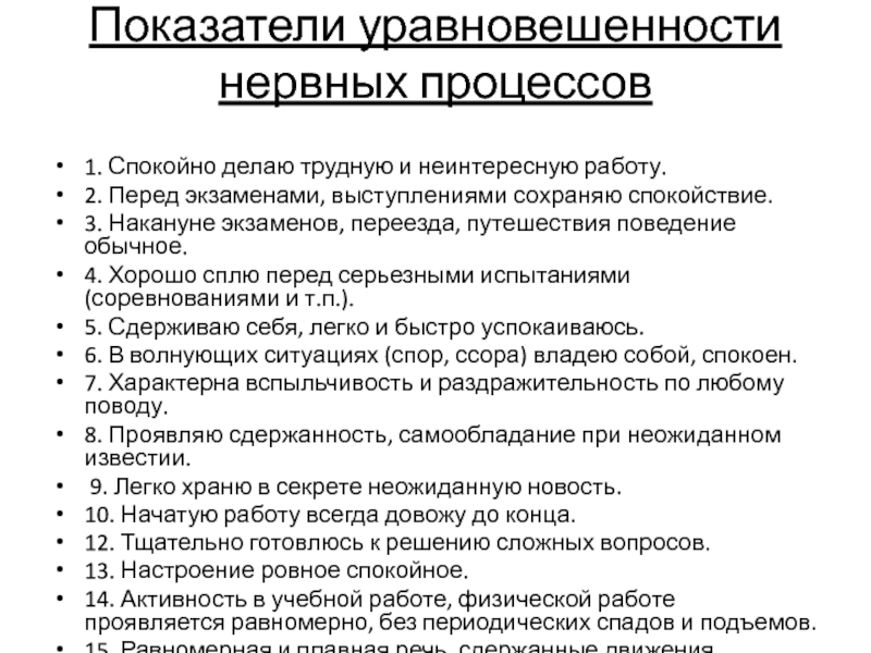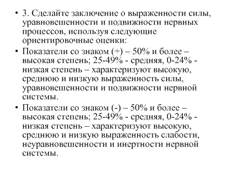 Слайд 93. Сделайте заключение о выраженности силы, уравновешенности и подвижности нервных процессов,