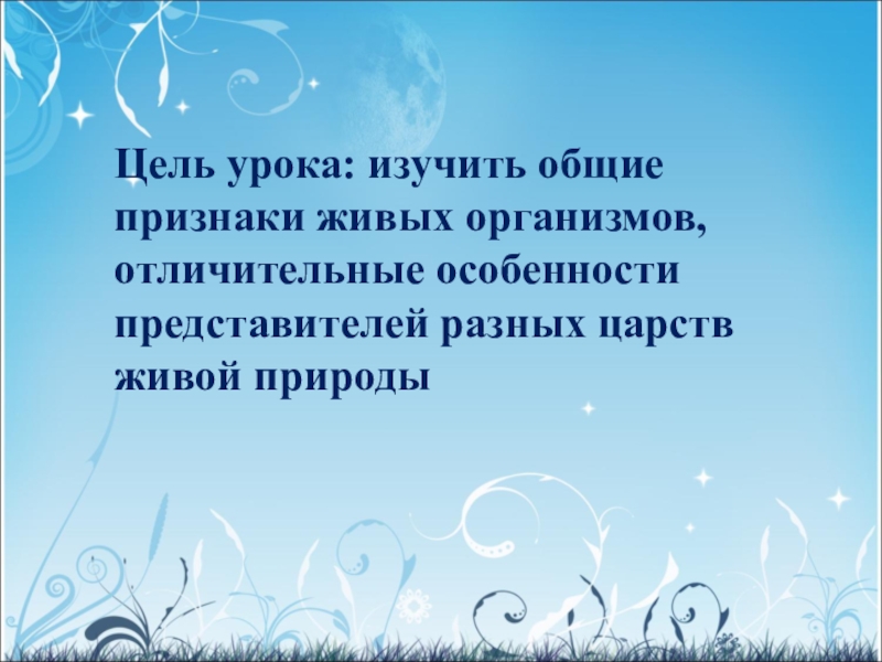 Цель урока: изучить общие признаки живых организмов, отличительные особенности