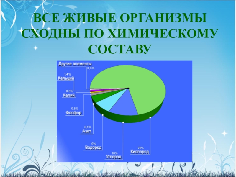 Слайд 16ВСЕ ЖИВЫЕ ОРГАНИЗМЫ СХОДНЫ ПО ХИМИЧЕСКОМУ СОСТАВУ