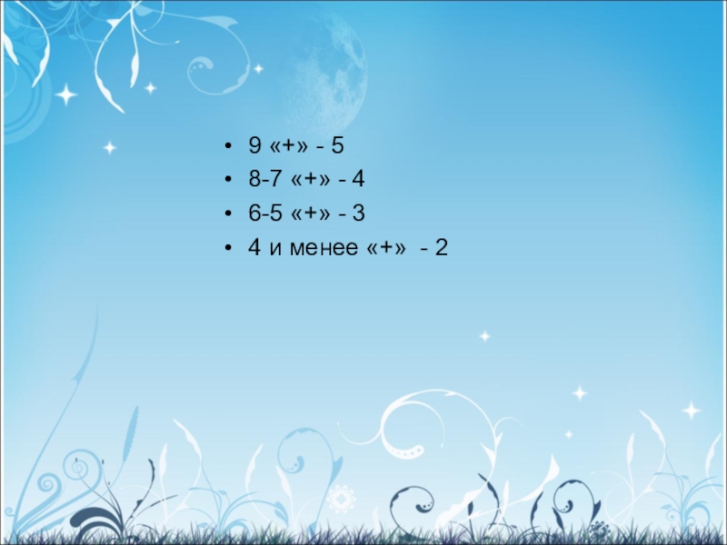 9 «+» - 58-7 «+» - 46-5 «+» - 34 и менее «+» - 2