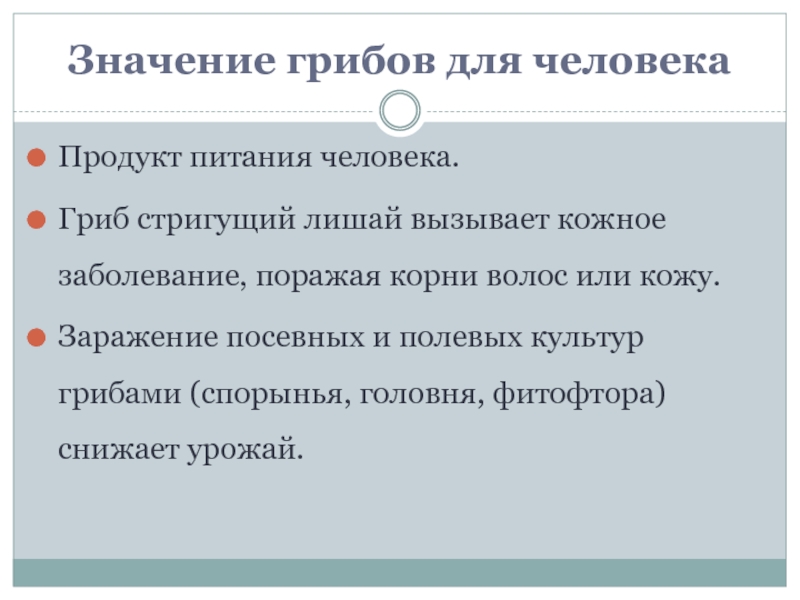 Гриб мукор вызывает порчу продуктов. Из гриба пеницилл был получен первый антибиотик