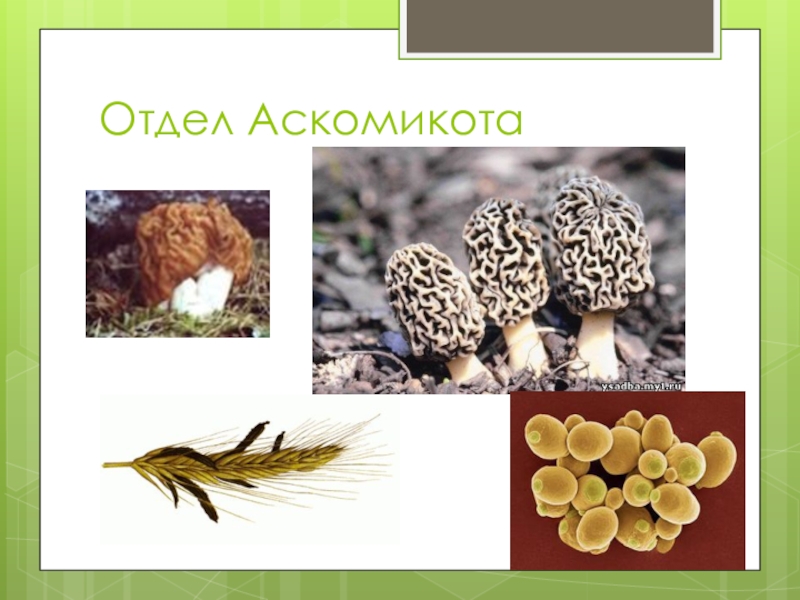 Отдел ХитридиомикотаПреимущественно одноклеточные и микроско-пические формы, ведущие Паразитический образ жизни