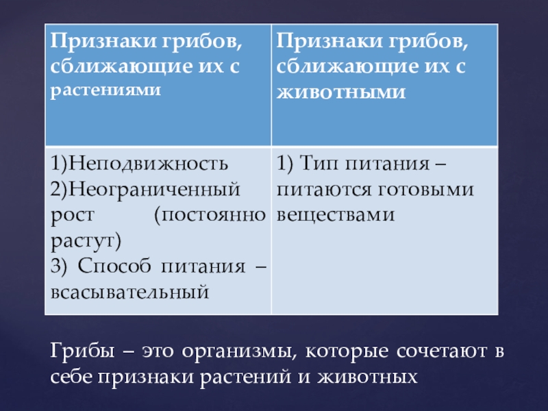 Слайд 12Грибы – это организмы, которые сочетают в себе признаки растений и