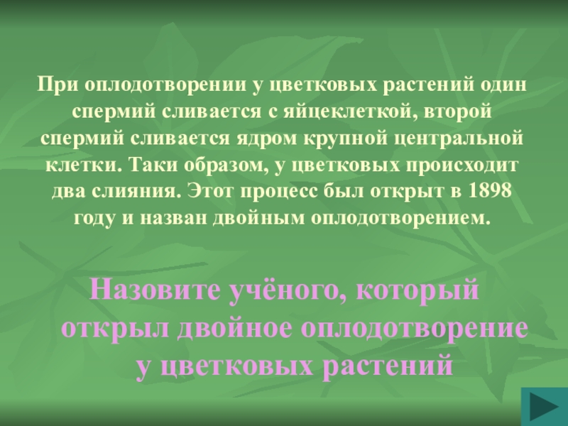 Назовите учёного, который открыл двойное оплодотворение у цветковых растений